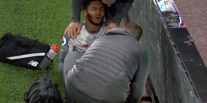 واستبدل مدافع منتخب إنكلترا بعد 23 دقيقة من المباراة التي انتصر فيها ليفربول 3-1 أمس الأول باستاد (تيرف مور) بعد تدخل عنيف من بن مي لاعب بيرنلي.