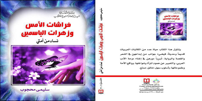 شخصيات نسائية عربية نبغن في الثقافة والأدب جمعها كتاب “فراشات الأمس وزهرات الياسمين” للباحثة المتخصصة في الشؤون النسائية سليمى محجوب.