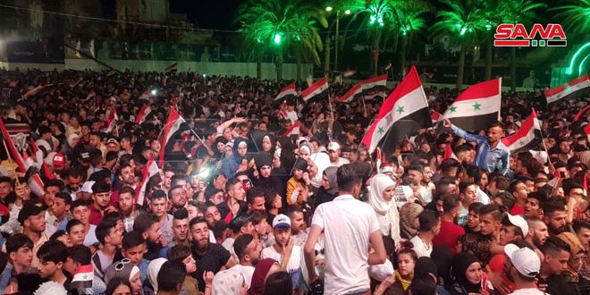 فرح السوريين في محيط قلعة حلب بفوز الدكتور بشار الأسد بالانتخابات الرئاسية