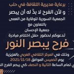 احتضن مسرح المركز الثقافي العربي في العزيزية بحلب حفل تكريم للمشاركين في مبادرة “فرح يبصر النور” تضمن فقرات موسيقية وغنائية وعرضاً مسرحياً بمشاركة مجموعة من المكفوفين.