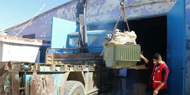 قدم فرع منظمة الهلال الأحمر العربي السوري معدات ومستلزمات خاصة بصيانة التجهيزات الكهربائية وغواطس آبار المياه في مشروع علوك الذي يغذي مدينة الحسكة والريف الغربي بالمياه.