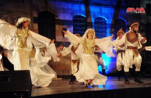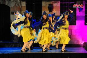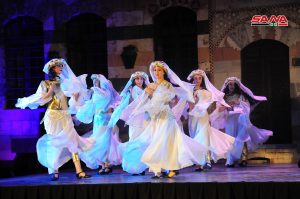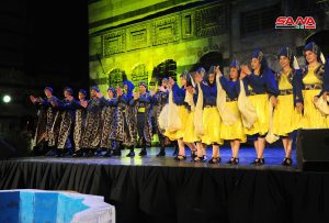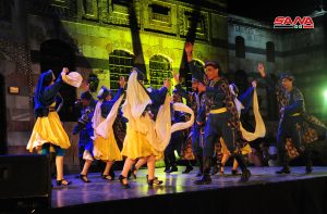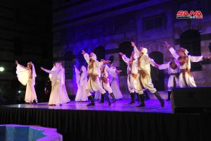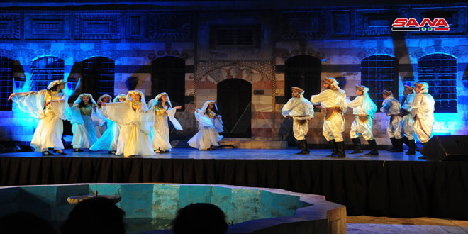 باقة من أنماط الرقص التي تشتهر بها كل محافظة قدمتها فرقة جلنار للمسرح الراقص السوري على خشبة مسرح قصر العظم ضمن رابع أيام فعاليات الفلكلور الشعبي.