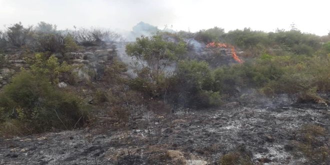 أخمدت فرق الإطفاء من دائرة الحراج ومركز إطفاء مدينة القرداحة والدفاع المدني حريقاً شب في الأراضي الزراعية في قريتي المعلقة وبقيلون في منطقة القرداحة بريف اللاذقية.