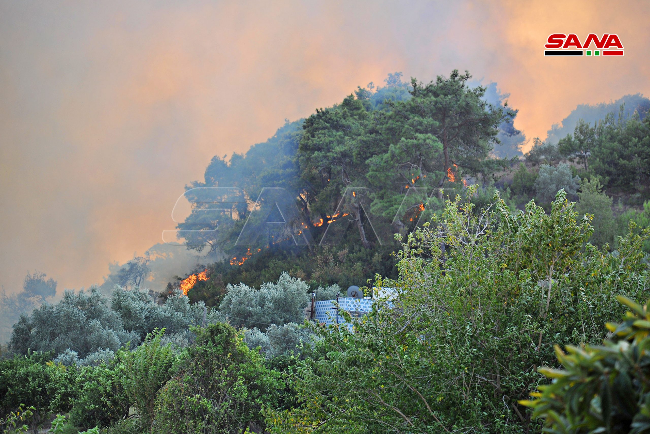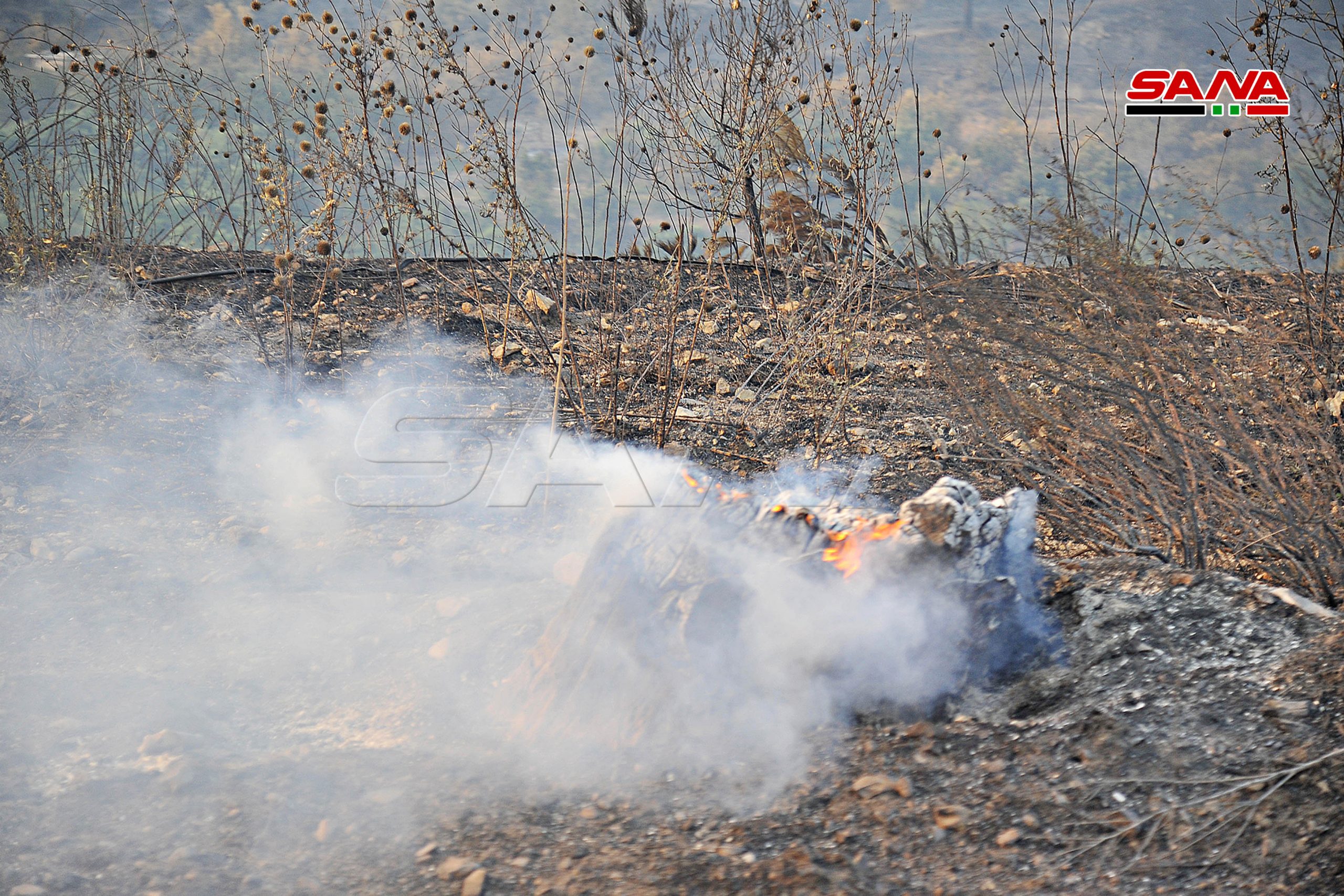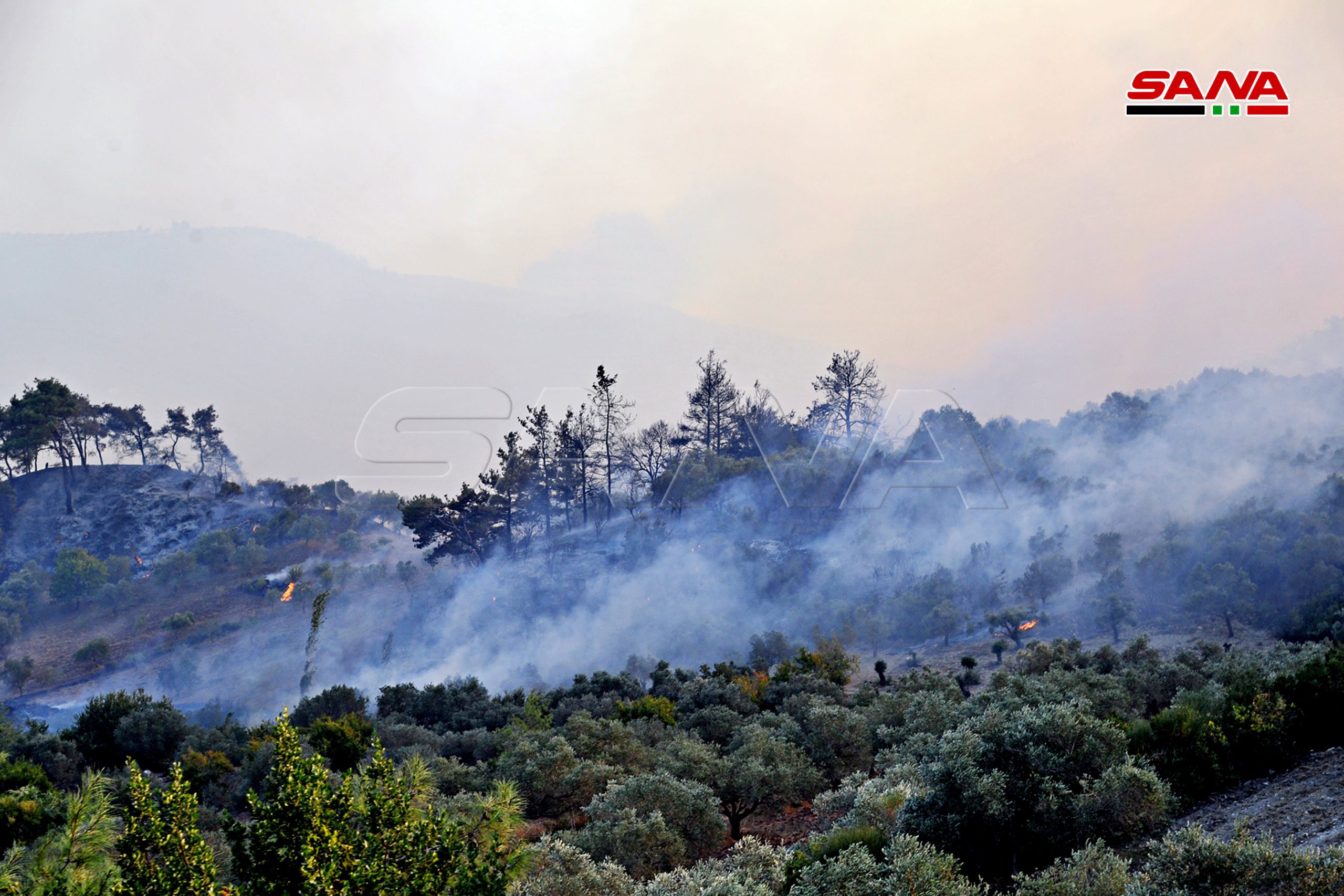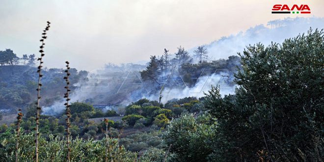 فرق الإطفاء تواصل عمليات إخماد الحرائق في بللوران بريف اللاذقية