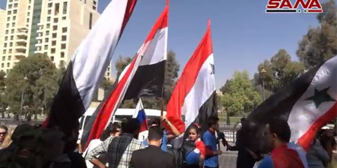 فريق نادي المغامرة السورى يرفع العلم السورى على جسر الرئيس