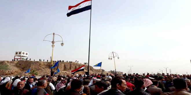 وفي السياق نفسه احتفلت الفعاليات الرسمية والشعبية في ساحة سوق القلعة الاثرية بالحسكة برفع اطول سارية للعلم السوري تاكيدا منهم على تمسكهم براية الوطن مرفوعة خفاقة موجهين التحية لابطال الجيش العربي السوري الذين يدافعون عن كرامة وعزة سورية في وجه أكبر مؤامرة كونية.