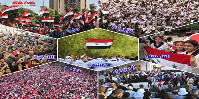 في كل المناطق وعلى امتداد الجغرافيا السورية خرج السوريون ليؤكدوا وقوفهم مع وطنهم وليوصلوا كلمتهم للعالم أجمع بأن قرارهم هو المضي نحو المستقبل ومواجهة كل التحديات والضغوط الخارجية فالمشاركة في الاستحقاق الدستوري اختيار أقره الشعب السوري ليوجه رسالته لكل العالم بأنه سيواصل صموده وحماية وطنه ضد كل التهديدات حتى الوصول الى النصر الكامل.