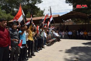وفي قرية حدادة بريف القدموس توافد المواطنون الى ساحة مدرسة القرية وأقاموا احتفالاً عبروا من خلاله عن تأييدهم ودعمهم للانتخابات المقبلة.