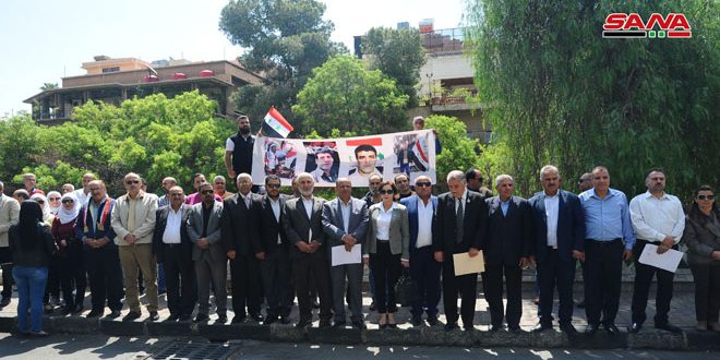 نظمت فعاليات أهلية وشعبية من محافظة القنيطرة اليوم وقفة تضامنية مع أهلنا الصامدين في الجولان السوري المحتل أمام مقر بعثة اللجنة الدولية للصليب الأحمر بدمشق وللمطالبة بإعادة فتح معبر القنيطرة الذي تتعمد سلطات الاحتلال الإسرائيلي إغلاقه لعزل أبناء الجولان عن الوطن سورية.