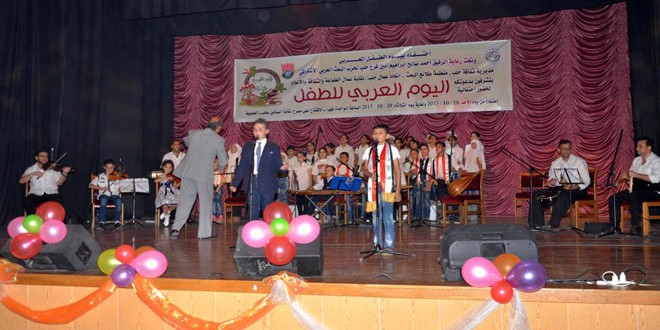احتفاء بيوم الطفل العربي اقام فرع حلب لحزب البعث العربي الاشتراكي بالتعاون مع مديرية الثقافة وفرع منظمة طلائع البعث واتحاد عمال حلب حفلا فنيا للاطفال على مسرح فرع نقابة الفنانين تضمن عددا من الفقرات الفنية والغنائية الهادفة ووصلات من الموشحات الحلبية.