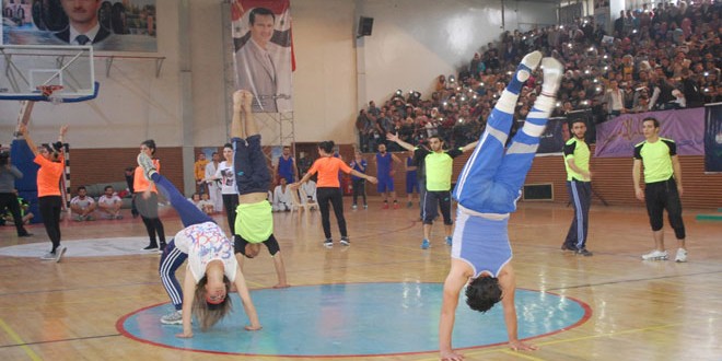 وشملت الفعالية التي أقيمت بمناسبة الذكرى ال45 للحركة التصحيحية المجيدة وعام على انطلاق الجامعة كرنفالا طلابيا في صالة الشهيد ناصح علواني الرياضية بالتعاون مع كلية التربية الرياضية.