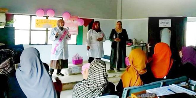 ضمن نشاطات حملة التوعية الوطنية حول سرطان الثدي التي أطلقتها وزارة الصحة بداية الشهر الجاري نفذ مركز دعم وتمكين المرأة التابع لفرع جمعية تنظيم الأسرة السورية بدرعا فعالية توعوية بأهمية الكشف المبكر عن سرطان الثدي في بلدة السهوة بريف درعا الشرقي.