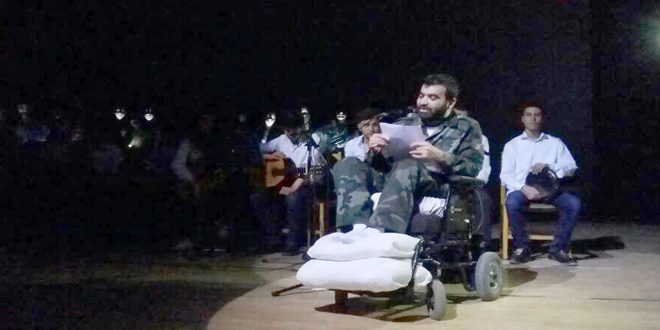 وتخللت الاحتفالية قصيدة شعرية قدمها الجريح البطل أيهم أنور زينة من أبطال الجيش العربي السوري بعنوان “الأرض لمن يحميها وسورية بدها دم يا أمي”.