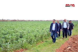 وخلال جولة له اطلع وزير الزراعة على واقع المحاصيل في عدد من المناطق ولا سيما القمح والشعير واللوز والبطاطا واستمع من المزارعين ومربي الثروة الحيوانية إلى مشاكلهم ومطالبهم لإيجاد الحلول المناسبة لها بما يكفل استمرار العملية الإنتاجية وزيادة المساحات المزروعة.