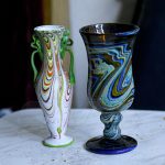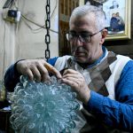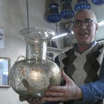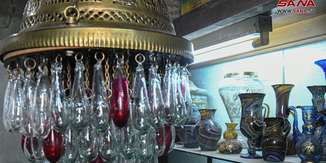 خرج الحرفي محمد الحلاق عن المألوف بصناعة نفخ الزجاج يدوياً وتابع خطى أجداده ووالده وطور عليها بصناعة قطع زجاجية تراثية بألوان وأشكال متعددة في ورشته بخان الزجاج في باب شرقي بدمشق.