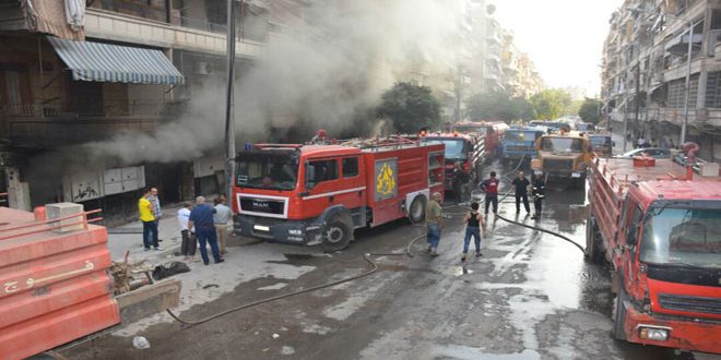 وأوضح برازي أنه “تمت الاستعانة أيضا بصهاريج من مجلس مدينة حلب إلى جانب إشراك آليات وعناصر الفوج حيث تم اتخاذ الإجراءات اللازمة لمنع امتداد النيران للأبنية السكنية المجاورة وجرت السيطرة على الحريق وماتزال عمليات التبريد مستمرة حتى اللحظة وقد تستغرق عدة ساعات أخرى”.