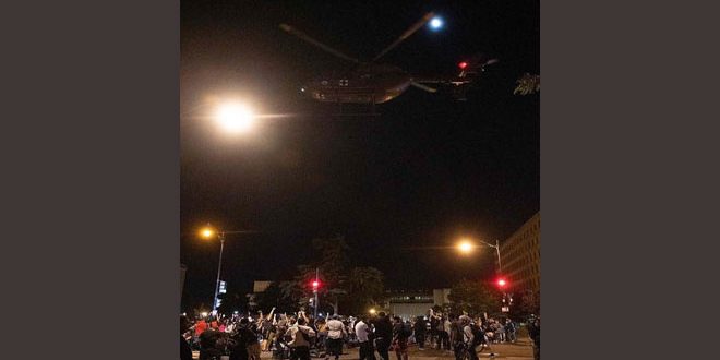 كشفت تسجيلات فيديو تداولها ناشطون على مواقع التواصل الاجتماعي أن مروحيات عسكرية أمريكية حلقت على ارتفاع منخفض لتفريق المتظاهرين الذين نزلوا إلى الشوارع احتجاجا على مقتل جورج فلويد في منطقة الحي الصيني في العاصمة واشنطن الليلة الماضية.