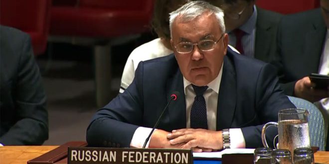 وأوضح فيرشينين خلال جلسة لمجلس الأمن حول الوضع في سورية اليوم أن الجيش العربي السوري يواجه في إدلب مجموعات إرهابية تنضوي تحت زعامة تنظيم جبهة النصرة الإرهابي تواصل خرق اتفاق منطقة خفض التصعيد في المحافظة لذلك يتعين مواصلة مكافحة الإرهابيين فيها.