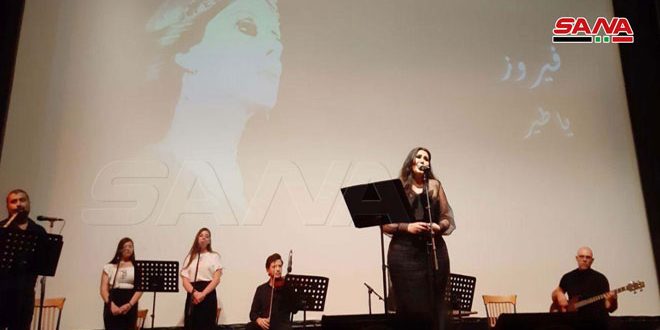 وبدأت الأمسية بفيروزيات (زوروني كل سنة مرة حرام ويا طير ودخلك ياطير الوروار وهالسيارة مش عمتمشي ويا دارة دوري فينا ويارايح ع كفر حالا وطيري يا طيارة طيري) إضافة إلى أغان خاصة منها (لأني روح) كلمات وألحان المؤلف الموسيقي رضوان نصري و(مبارح على بابك) كلمات وألحان نسيم ديب.