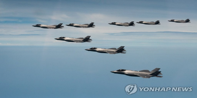 ونقلت وكالة يونهاب عن سلاح الجو قوله: “إن سيئول وواشنطن ستجريان تدريبات جوية مشتركة شاملة استعدادا للحرب في منطقة الدفاع الجوي الكورية الجنوبية في الفترة من الـ 31 من تشرين الأول الجاري إلى الـ 4 من تشرين الثاني المقبل بمشاركة حوالي 140 طائرة كورية جنوبية من طراز “إف 35 إيه” و” إف 5 ك” و” كي إف 16″ وأيضا حوالي 100 طائرة أمريكية من طراز “إف 35 بي” و”إف 16″.