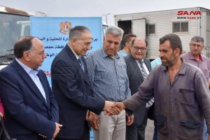 محافظ طرطوس فراس الحامد أشار الى أن تكريم عمال النظافة المتميزين يأتي تقديراً لدورهم وللجهد المبذول من قبلهم للحفاظ على بيئة نظيفة مؤكداً أهمية العمل التكاملي بين الجهات المعنية والمجتمع المحلي للحفاظ على الموارد والمصادر الطبيعية.