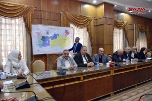 مدير صحة حماة الدكتور ماهر يونس قدم عرضاً عن خريطة المناطق الصحية بالمحافظة والمراكز التي تم تأهيلها والعقبات التي تعترض العمل وسبل تذليلها.