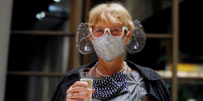 واشتهرت كمامة فيشر بين رواد الحفلات الموسيقية حيث ظهر بها العشرات في حفل أقيم في بودابست أمس.