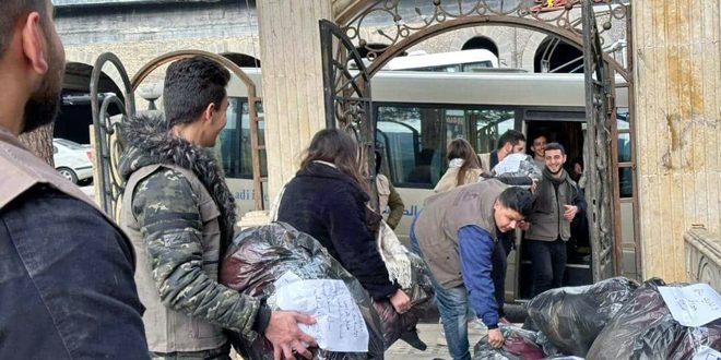 انطلقت من منطقة وادي النضارى في محافظة حمص قافلة إعانة إغاثية لأهالي المناطق المنكوبة في اللاذقية، مقدمة من فرع الاتحاد الوطني لطلبة سورية بجامعة الوادي الخاصة.