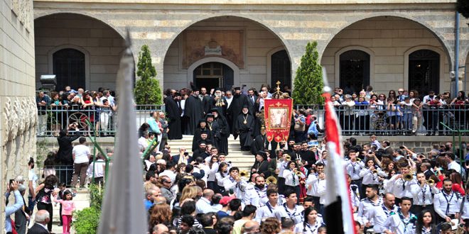 أقيم اليوم قداس إلهي بمناسبة اثنين الفصح المجيد ترأسه غبطة البطريرك يوحنا العاشر يازجي بطريرك أنطاكية وسائر المشرق للروم الأرثوذكس في الكاتدرائية المريمية بدمشق وعاونه الأسقفان المعاونان في البطريركية المطرانان موسى الخوري ولوقا الخوري ولفيف من الكهنة وقام بخدمة القداس جوقة الكنارة الروحية البطريركية.