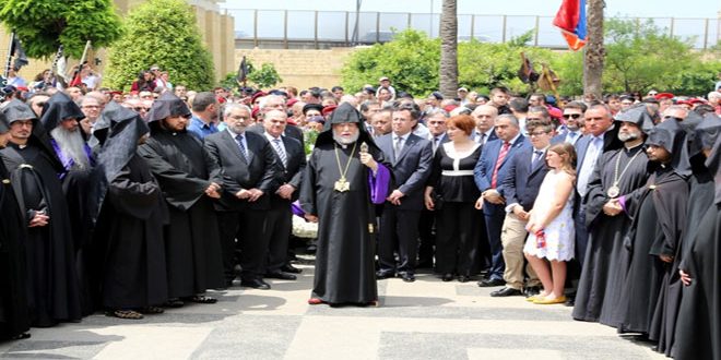 أقيم في كاثوليكوسية الأرمن الأرثوذكس في بيروت اليوم قداس إحياء للذكرى الأولى بعد المئة للإبادة الأرمنية التي ارتكبها العثمانيون وراح ضحيتها مليون ونصف المليون شخص.