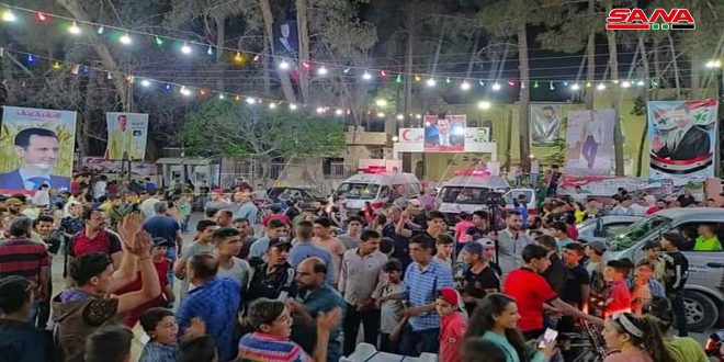 الفعاليات الشبابية والأهلية أشارت إلى أن السوريين على امتداد ساحات الوطن يعبرون اليوم عن ثقتهم وفرحهم بفوز الدكتور الأسد الذي يعد استكمالاً لانتصارات دماء الشهداء وفوزاً للقرار السوري المستقل.