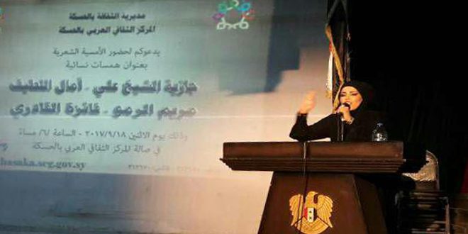 حفلت الأمسية الشعرية التي أقامتها مديرية الثقافة في المركز الثقافي العربي بمدينة الحسكة اليوم بقصائد وطنية ووجدانية قدمتها عدد من شاعرات المحافظة.