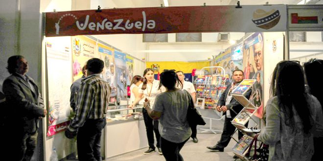 وفي جناح السفارة الفنزويلية بالمعرض تستوقفك لوحة وضعت لجمع التواقيع تضامنا مع فنزويلا التي يواجه شعبها عدوانا خططت له الولايات المتحدة وجندت عملاءها لتنفيذه حيث يستقبلك القائمون على الجناح بكل حب من خلال توزيع بعض من المأكولات الفنزويلية التقليدية.. المسؤول في الجناح بشار برازي وهو من السفارة الفنزويلية أشار إلى أن فنزويلا تشارك على المستوى الرسمي مبينا أن الجناح يقدم معلومات للزوار ويعرض مجلات وصورا عن فنزويلا وعن منجزات الثورة البوليفارية إضافة إلى التعريف بحقيقة الأحداث الدائرة فيها.