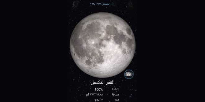 يرافق سماء المنطقة اعتباراً من الليلة ولثلاث ليال قادمة (قمر الدودة) وذروة اكتماله ليلة الجمعة المقبلة حيث الشمس في أفقها الغربي والقمر في أفقه الشرقي.
