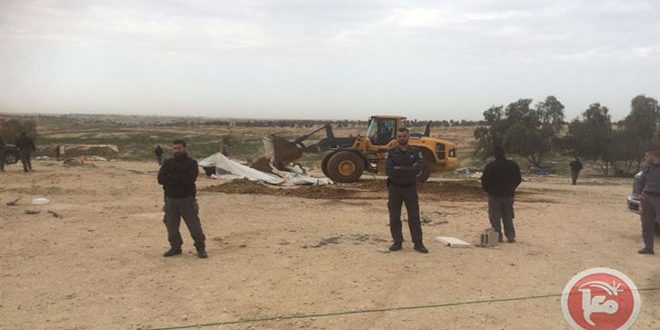 وذكرت وكالة معا أن قوات الاحتلال اقتحمت القرية بعدد من الجرافات وهدمت منازل الفلسطينيين وخيمهم وشردت عائلاتهم.