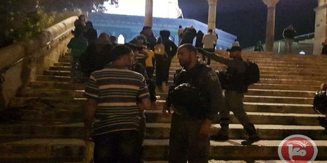 وذكرت وكالة “معا” الفلسطينية أن قوات الاحتلال اقتحمت الأقصى وأخرجت المعتكفين الفلسطينيين الموجودين في باحاته بالقوة.