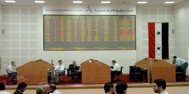 وانخفض سهم بنك سورية الدولي الإسلامي عن سعر إغلاق جلسة التداول السابقة بنسبة 91ر1 بالمئة وأغلق على سعر 75ر181 ليرة وكذلك سهم بنك الشام تراجع بنسبة 83ر1 بالمئة وأغلق على سعر 28ر154 ليرة إضافة إلى سهم بنك قطر الوطني الذي انخفض بنسبة 85ر1 بالمئة وأغلق على سعر 25ر154 ليرة.