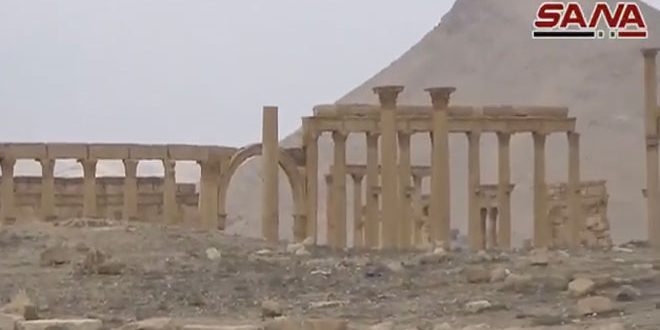 كاميرا سانا تتجول في مدينة تدمر وترصد اَثار جرائم “داعش” في المدينة الاَثرية والمنازل