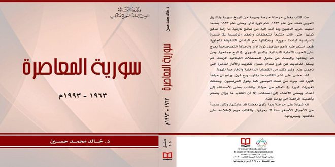 يتناول الكتاب الذي أصدرته الهيئة العامة السورية للكتاب مؤخراً بعنوان “سورية المعاصرة 1963-1993” للدكتور خالد محمد حسين إحدى أكثر المراحل التاريخية في سورية غنى بالتطورات من قيام ثورة الثامن من آذار التي قادها حزب البعث العربي الاشتراكي لغاية مطلع التسعينيات ونهاية الحرب الباردة.