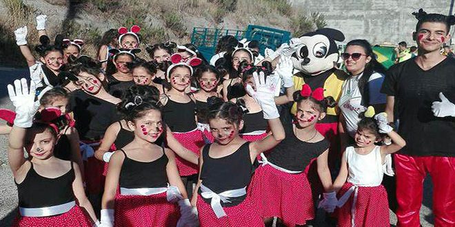 وانطلق الكرنفال من مدخل القرية الشرقي بمشاركة فرق سيرا على الأقدام أو ركوبا على الخيل والمركبات التي تزينت بأبهى الألوان حاملين مجسمات لشخصيات كرتونية محببة أو مقتبسة من الطبيعة كالفراشات ترافقها فرق من الأطفال ارتدت الزي الشعبي التراثي للمنطقة وأخرى تجسد العتاد والزي العسكري كرسالة تقدير لبطولات الجيش العربي السوري في مواجهة الإرهاب.
