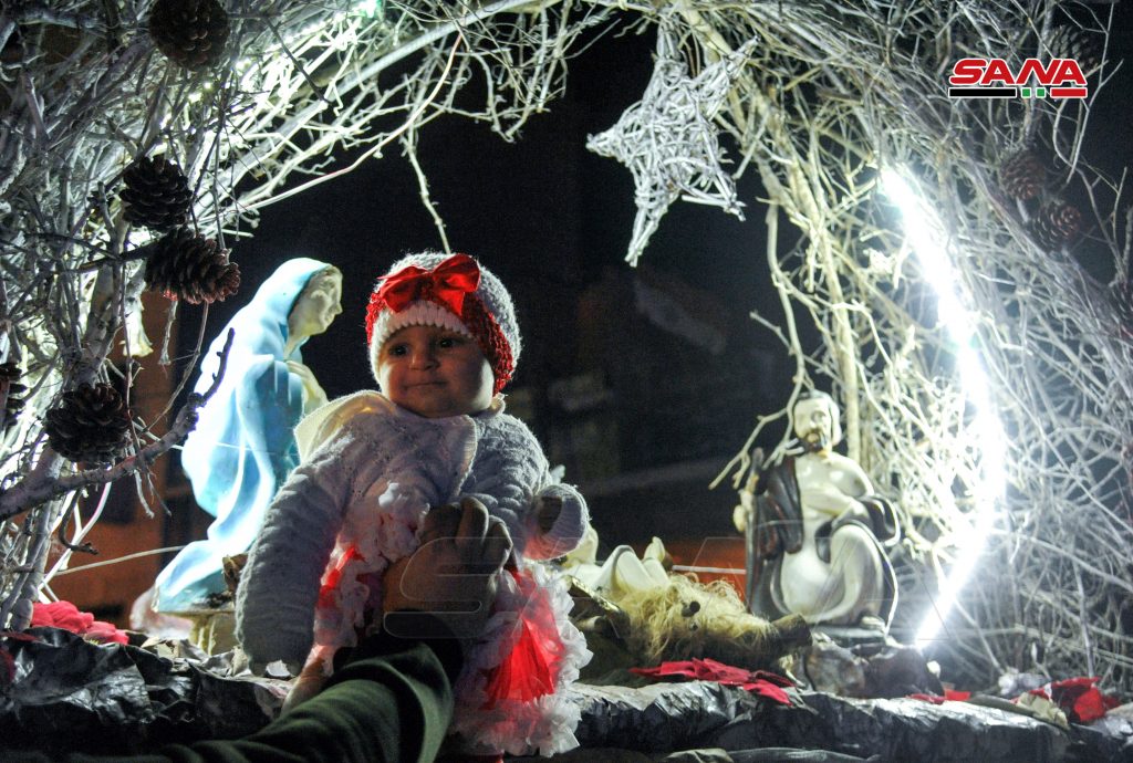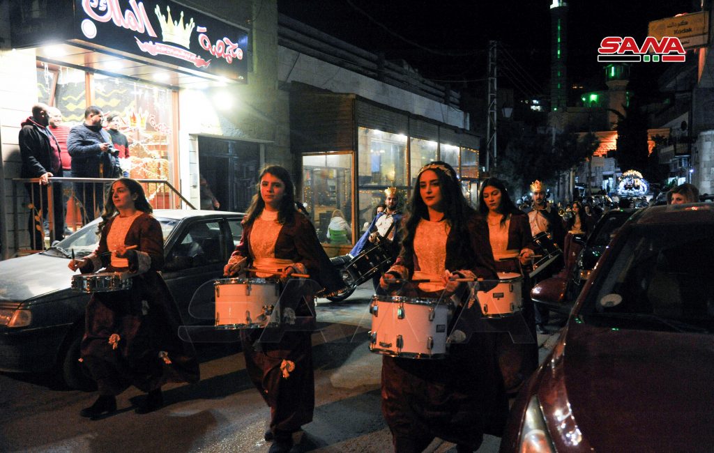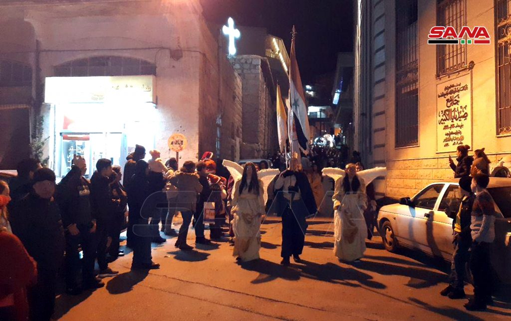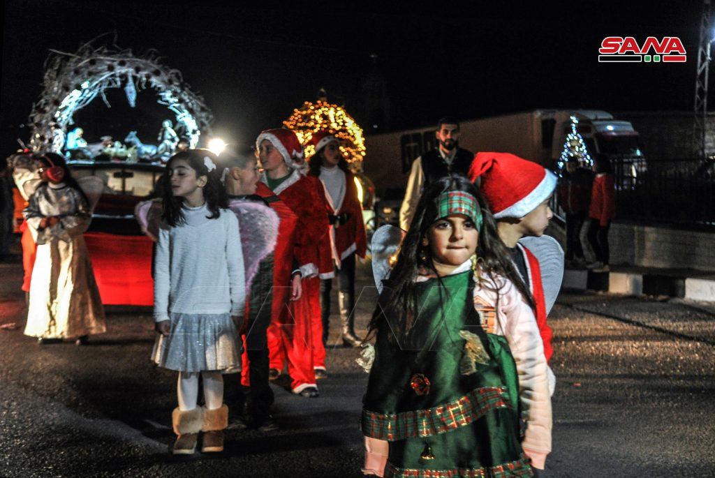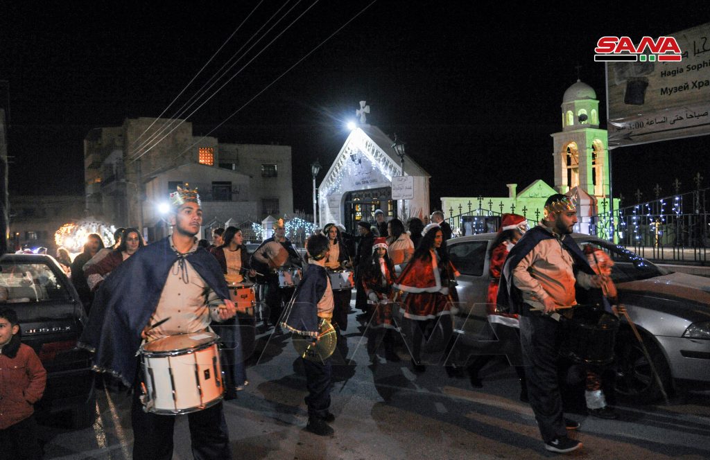 كاهن رعية آجياصوفيا للروم الملكيين الكاثوليك الأب أندراوس اسكندافي قال في تصريح لـ سانا كرنفال اليوم احتفال بميلاد السيد المسيح.. ميلاد الفرح والسلام في سورية.. بميلاد السيد لمسيح عم السلام على الأرض وفي ذكرى ميلاده هذا العام نأمل أن يعم السلام في جميع أنحاء سورية.