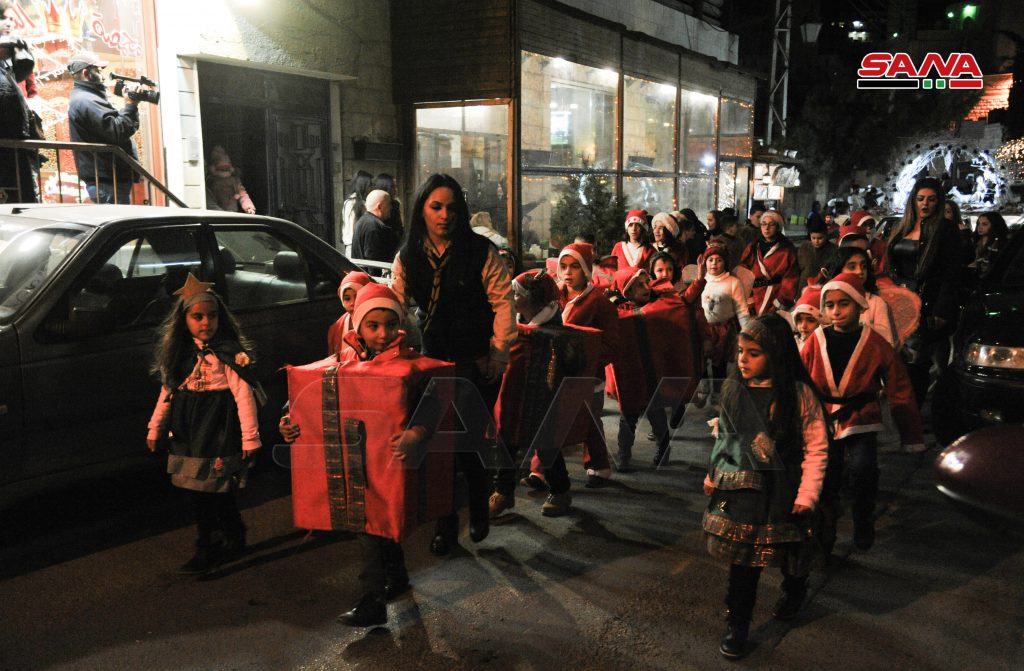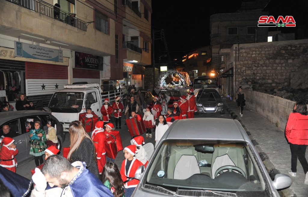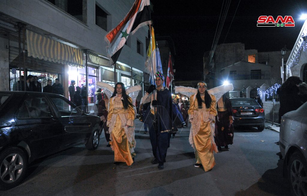 جاب كرنفال “نور المشرق” الذي نظمته فرقة مراسم آجياصوفيا للروم الملكيين الكاثوليك مساء اليوم بمناسبة عيد الميلاد المجيد شوارع صيدنايا ابتداء من دير التجلي مروراً بساحة القديس بطرس والساحة الرئيسة بالبلدة ثم العودة إلى الدير.