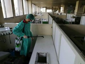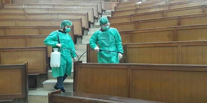 بدأت كلية طب الأسنان بجامعة دمشق اليوم عمليات تعقيم شاملة للمخابر والعيادات والمدرجات والمكاتب الإدارية في إطار الإجراءات الحكومية المتخذة للتصدي لفيروس كورونا حفاظا على الصحة والسلامة العامة.