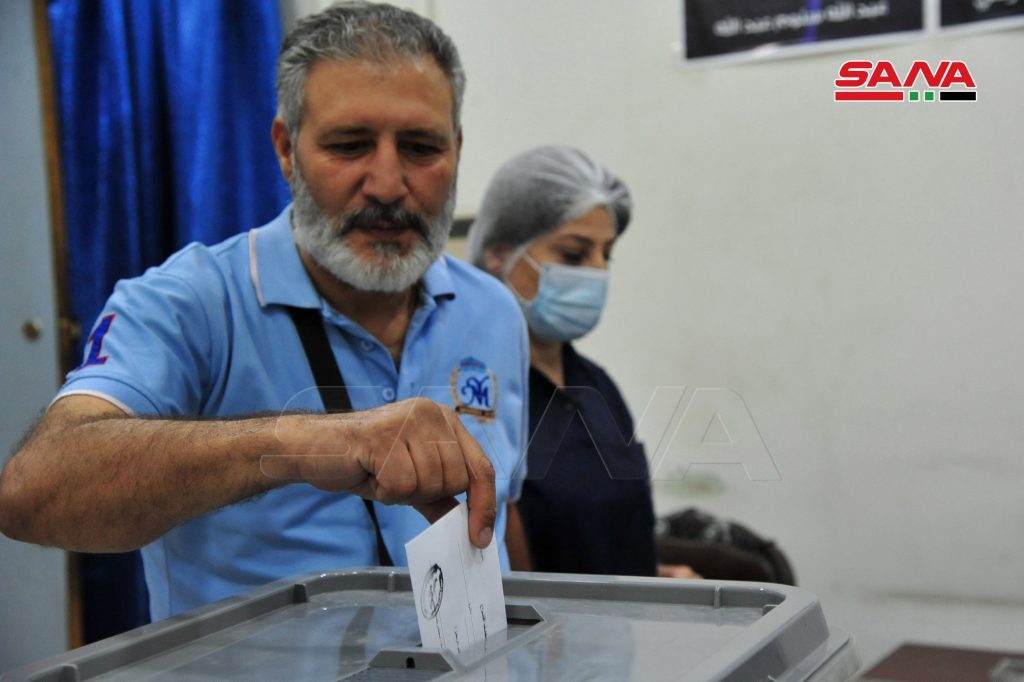 وفي المركز الانتخابي بالهيئة العامة لمشفى دمشق “المجتهد” شارك عدد من المرضى الكوادر الطبية بالانتخابات فرغم الظروف الصحية التي يعاني منها العم عصام عزام البالغ من العمر 60 سنة أدلى بصوته مشيراً إلى أن المرض لا يمنعه من أداء واجبه الوطني.