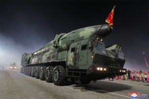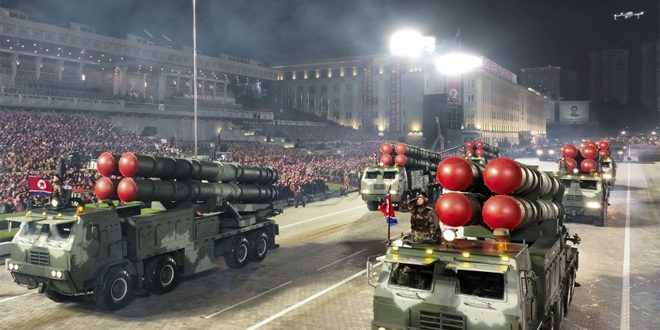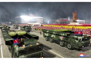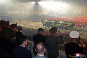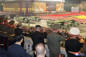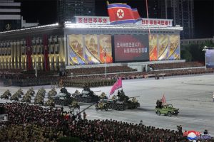 وظهرت في العرض العسكري صواريخ (هواسونغ 17) الباليستية العابرة للقارات وصواريخ (هواسونغ 18) الباليستية التي تعمل بالوقود الصلب، وطائرات مسيرة للاستطلاع وأخرى للهجوم وغواصات نووية مسيرة محلية الصنع.
