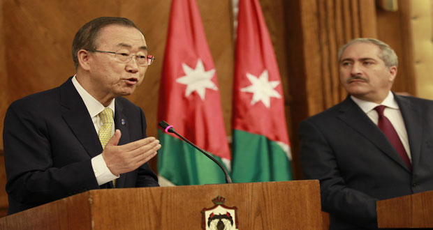 وقال كي مون في مؤتمر صحفي عقده في عمان مع وزير الخارجية الأردني ناصر جودة مساء اليوم “إنني هنا بقلب مثقل بالهموم ففي هذا الوقت الكثير من المدنيين الأبرياء يقتلون فأكثر من 600 شخص قتلوا إلى الآن و3600 شخص جرحوا وكلهم مدنيون فلسطينيون من نساء وأطفال وفي كل ساعة على الأقل طفل قتل أثناء اليومين الماضين” دون أن يعلن صراحة إدانته للجانب الإسرائيلي الذي يستمر بارتكاب هذه الجرائم كما أنه لم يدع لفك الحصار الإسرائيلي الجائر المستمر على القطاع منذ سنوات.