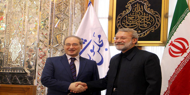 وأكد لاريجاني ضرورة الاهتمام بالجانب الاقتصادي وتذليل الصعوبات في هذا المجال مشددا على أهمية التنسيق السوري الإيراني الروسي في محاربة الإرهاب والإرهابيين.