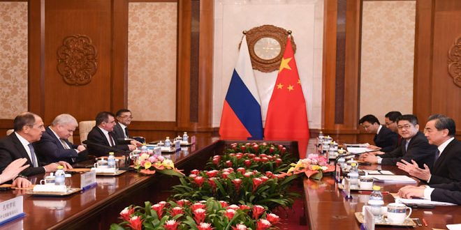 ونقلت وكالة تاس عن لافروف قوله اليوم خلال اجتماع مع نظيره الصيني وانغ يي: إن “تطوير الشراكة الاستراتيجية مع الصين يمثل أولوية بالنسبة للسياسة الخارجية الروسية وأن السياسة الموحدة لروسيا والصين والقائمة على الالتزام الصارم بالقانون الدولي تقوم بدور رئيسي في تعزيز الأمن والاستقرار في العالم”.