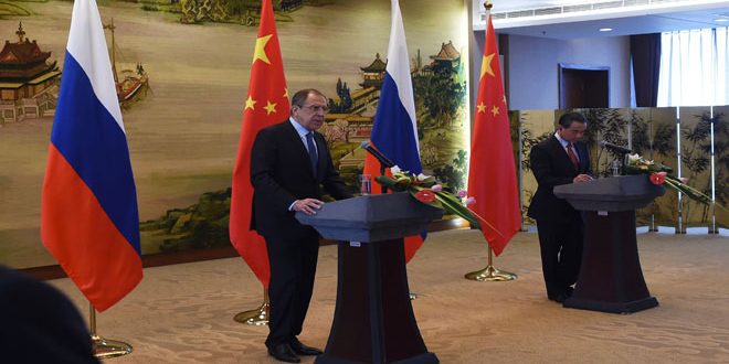 أعلن وزير الخارجية الروسى سيرغي لافروف أن روسيا والصين اتفقتا على تنسيق مواقفهما فى كل القضايا الدولية بما فيها سورية والعراق واليمن.