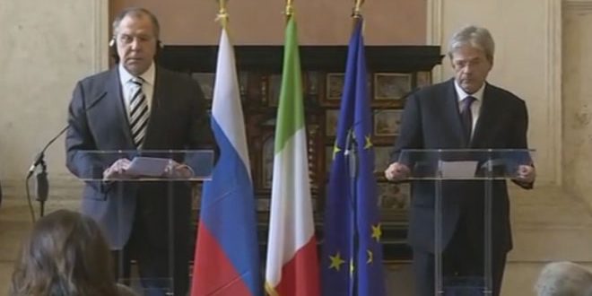 وكان لافروف شدد خلال مؤتمر صحفى مع نظيره الايطالى باولو جنتيليونى فى روما اليوم على انه يجب الالتزام بأحكام القانون الانسانى بشكلصارم لدى التعامل مع الوضع فى حلب داعيا الى تنفيذ قرارات الامم المتحدة حول سورية والتى تنص على ان تلتزم ما تسمى “المعارضة المعتدلة” بالانفصال عن التنظيمات الارهابية وعلى بدء العملية السياسية للتوصل الى حل للازمة دون شروط مسبقة.